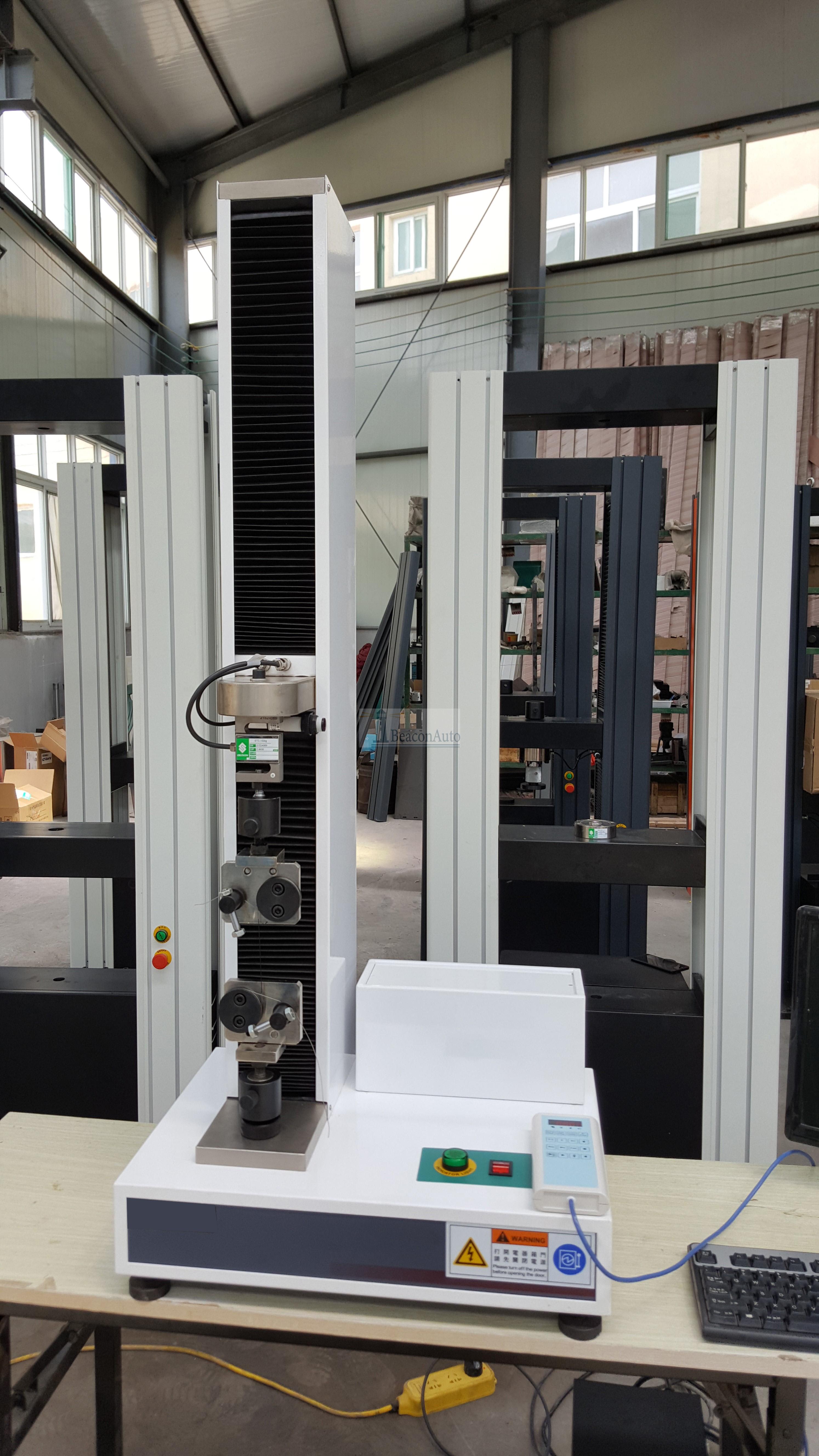 WDL-5F縫合線拉伸疲勞試驗機 產(chǎn)品型號:WDL-5F 產(chǎn)品用途:縫合線拉伸疲勞試驗機廣泛應用于醫(yī)用縫合線、橡膠、塑料、紡織物、防水材料、無紡布等非金屬材料及金屬絲、金屬箔、金屬片的壓縮力學性能試驗。 縫合線拉伸疲勞試驗機產(chǎn)品特點: 1、采用高精度、全數(shù)字調(diào)速系統(tǒng)及精密減速機, 驅(qū)動精密絲杠副進行試驗,實現(xiàn)試驗速度的大范圍調(diào)節(jié), 試驗過程噪音低、運行平穩(wěn)。 2、萬向節(jié)采用十字插銷結構,而且具有擺角限制功能, 一方面便于試樣夾持,保證試驗同心度, 另一方面很好的消除了不規(guī)則試樣對傳感器的影響。 3、觸摸鍵操作方式,液晶顯示器實時顯示。 顯示界面可顯示試驗方法選擇界面、試驗參數(shù)選擇界面、試驗操作及結果顯示界面和曲線顯示界面,方便快捷。 4、可實現(xiàn)試樣裝夾時橫梁快慢升降調(diào)整,具有過流、過壓、過載等保護裝置。 5、選配微機接口,可外接微機實現(xiàn)試驗過程的控制及數(shù)據(jù)的存儲、打印。 縫合線拉伸疲勞試驗機技術參數(shù): 主要技術指標 | 型號 | WDL系列縫合線拉伸疲勞試驗機 | 規(guī)格 | WDL系列 | 試驗力 | 200N | 300N | 500N | 1000N | 2000N | 結構形式 | 單臂式 | 壓縮空間 | 600mm | 負荷測量范圍 | 最大負荷的2%-100% | 負荷測量精度 | 優(yōu)于示值的±1% | 橫梁位移速度 | 0-500mm/min無級調(diào)速 | 速度精度 | ±1% | 外形尺寸(mm) | 530*266*1450 | 夾具配置 | 拉伸夾具一套(根據(jù)用戶試樣要求) | 電源 | 單相交流220V±10%V | 重量(kg) | 60kg |