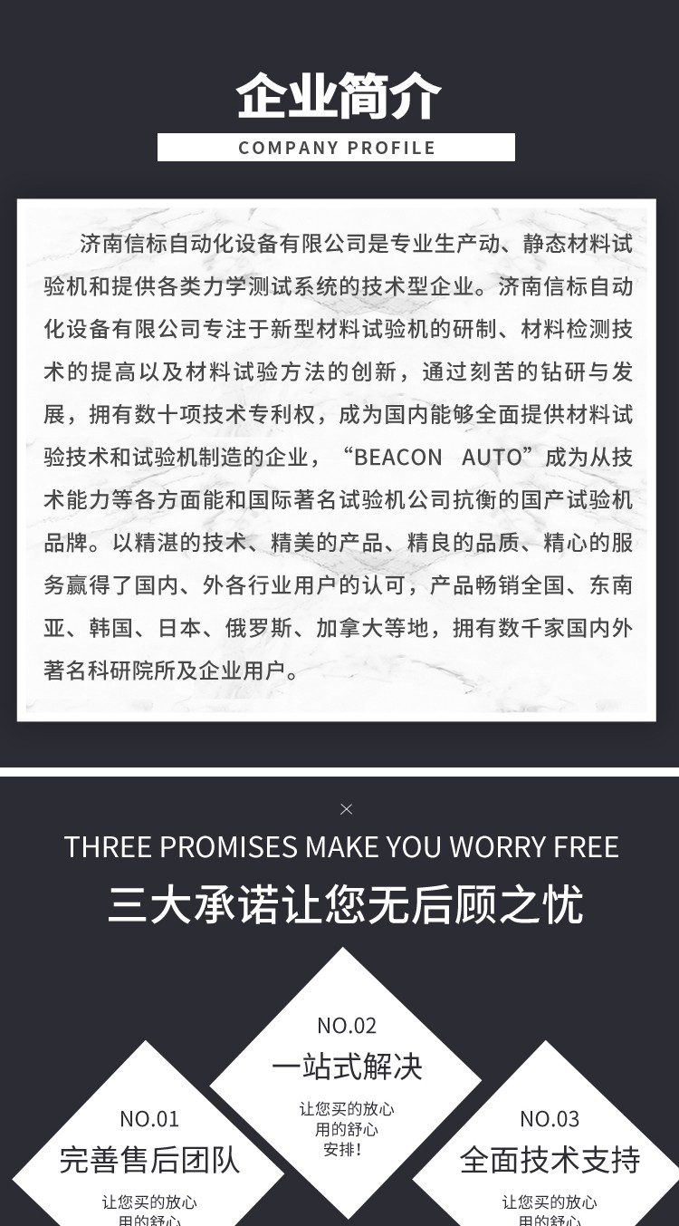 濟(jì)南信標(biāo)自動(dòng)化設(shè)備有限公司主要生產(chǎn):動(dòng)靜態(tài)萬(wàn)能疲勞試驗(yàn)機(jī),接骨板彎曲試驗(yàn)機(jī),縫合線拉伸疲勞試驗(yàn)機(jī),髖膝關(guān)節(jié)磨損試驗(yàn)機(jī),電子萬(wàn)能試驗(yàn)機(jī)、液壓萬(wàn)能試驗(yàn)機(jī)、巖石三軸、四軸,電液拉力試驗(yàn)機(jī),材料試驗(yàn)機(jī),高低溫蠕變,高低頻疲勞,拉伸、扭轉(zhuǎn)、杯突等二十多個(gè)系列兩千多個(gè)的品種。