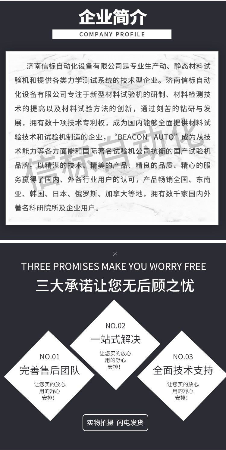 濟(jì)南信標(biāo)自動化設(shè)備有限公司主要生產(chǎn):動靜態(tài)萬能疲勞試驗(yàn)機(jī),接骨板彎曲試驗(yàn)機(jī),縫合線拉伸疲勞試驗(yàn)機(jī),髖膝關(guān)節(jié)磨損試驗(yàn)機(jī),電子萬能試驗(yàn)機(jī)、液壓萬能試驗(yàn)機(jī)、巖石三軸、四軸,電液拉力試驗(yàn)機(jī),材料試驗(yàn)機(jī),高低溫蠕變,高低頻疲勞,拉伸、扭轉(zhuǎn)、杯突等二十多個(gè)系列兩千多個(gè)的品種。