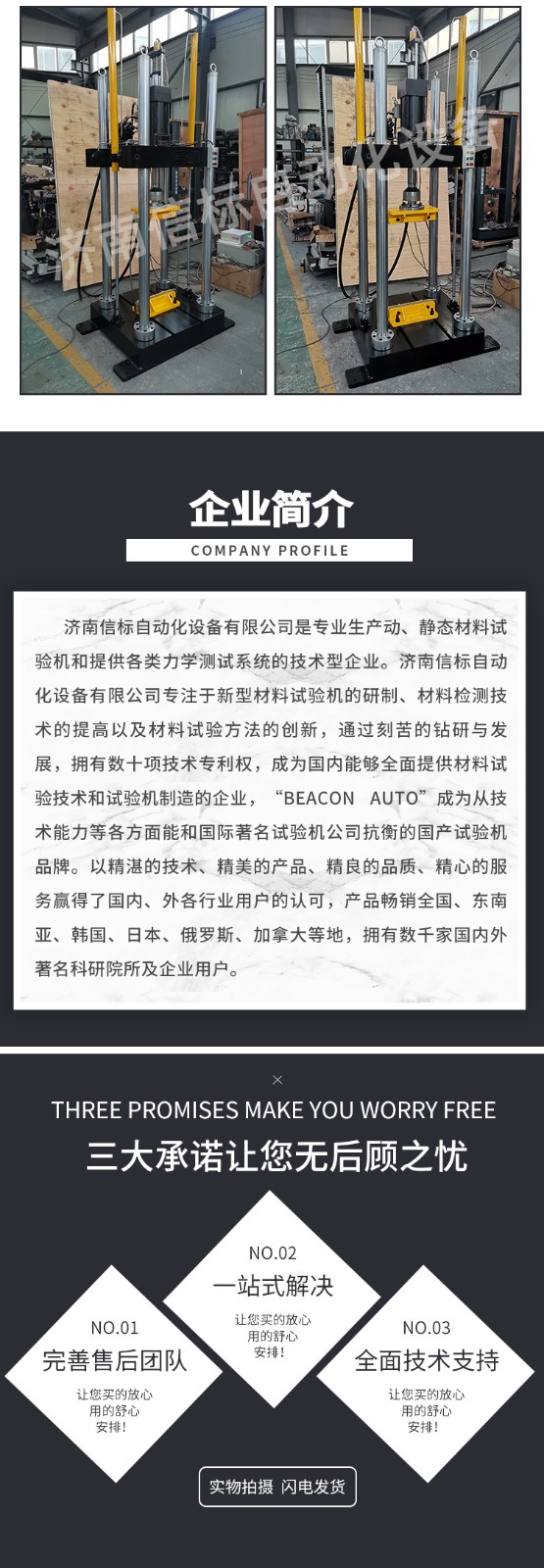 濟南信標自動化設(shè)備有限公司主要生產(chǎn):動靜態(tài)萬能疲勞試驗機,接骨板彎曲試驗機,縫合線拉伸疲勞試驗機,髖膝關(guān)節(jié)磨損試驗機,電子萬能試驗機、液壓萬能試驗機、巖石三軸、四軸,電液拉力試驗機,材料試驗機,高低溫蠕變,高低頻疲勞,拉伸、扭轉(zhuǎn)、杯突等二十多個系列兩千多個的品種。