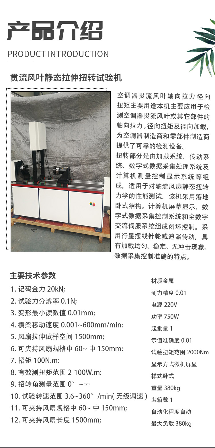 貫流風(fēng)葉靜態(tài)拉伸扭轉(zhuǎn)試驗(yàn)機(jī) 空調(diào)器貫流風(fēng)葉軸向拉力 徑向扭矩