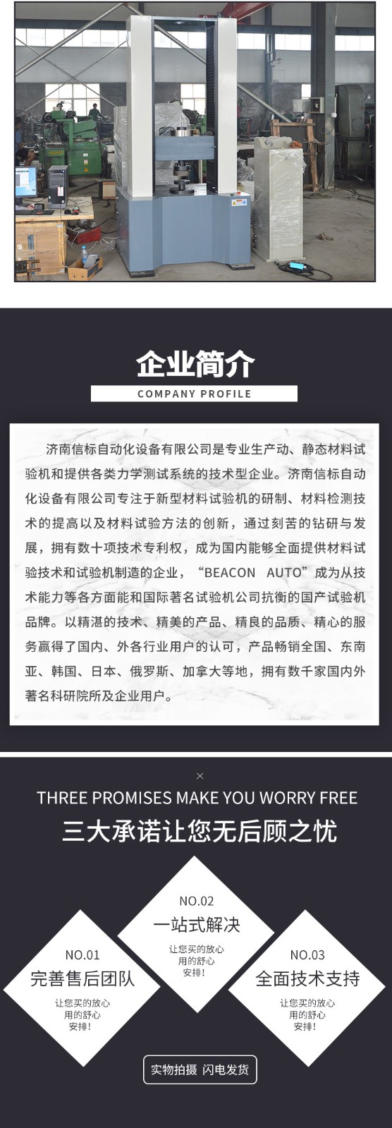 濟(jì)南信標(biāo)自動化設(shè)備有限公司主要生產(chǎn):動靜態(tài)萬能疲勞試驗(yàn)機(jī),接骨板彎曲試驗(yàn)機(jī),縫合線拉伸疲勞試驗(yàn)機(jī),髖膝關(guān)節(jié)磨損試驗(yàn)機(jī),電子萬能試驗(yàn)機(jī)、液壓萬能試驗(yàn)機(jī)、巖石三軸、四軸,電液拉力試驗(yàn)機(jī),材料試驗(yàn)機(jī),高低溫蠕變,高低頻疲勞,拉伸、扭轉(zhuǎn)、杯突等二十多個系列兩千多個的品種。