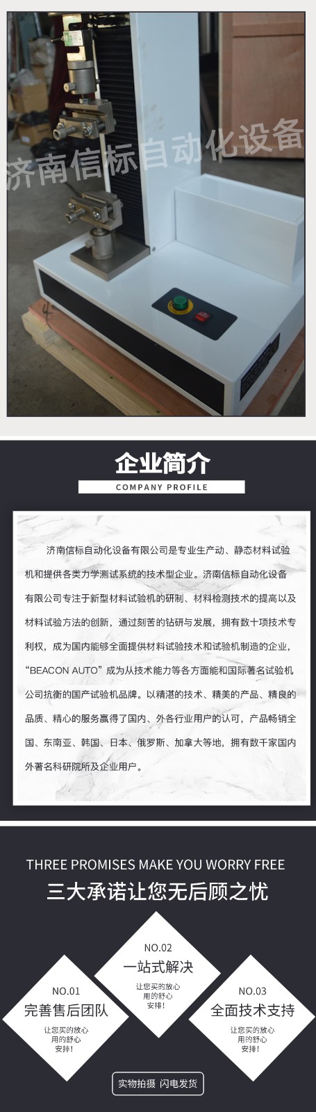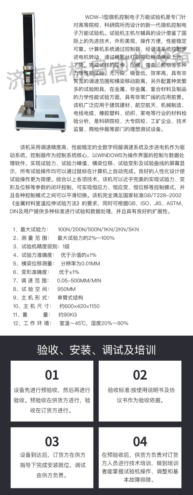 飯盒壓縮抗壓試驗機 單臂壓力萬能試驗機主要技術(shù)指標(biāo): 1、 最大試驗力: 100N/200N/500N/1KN/2KN/5KN 2、 測 量 范 圍: 最大試驗力的2%—100% 3、 試驗機精度級別:1級 4、 試驗力準(zhǔn)確度: 優(yōu)于示值的±1% 5、 橫梁位移測量: 分辨率為0.01mm 6、 變形準(zhǔn)確度: 優(yōu)于±1% 7、 調(diào) 速 范 圍: 0.05-500mm/min 8、 試 驗 空 間: 950mm 9、 主 機 形 式: 單臂式結(jié)構(gòu) 10、 主 機 尺 寸: 約600×420×1150 11、 重 量: 約90Kg 12、 工 作 環(huán) 境: 室溫~45℃,濕度20%~80% 飯盒壓縮抗壓試驗機 單臂壓力萬能試驗機主要功能及特點: 主機: 1.1調(diào)速系統(tǒng)采用伺服電機和自主研發(fā)減速系統(tǒng),性能穩(wěn)定可靠,具有過流、過壓、過載等保護裝置。調(diào)速范圍可達0.05~500mm/min。 1.2傳動部分采用圓弧同步齒形帶,精密絲杠副傳動,傳動平穩(wěn),噪音低,傳動效率高。 1.3萬向節(jié)采用十字插銷結(jié)構(gòu),而且具有擺角限制功能,一方面便于試樣夾持,保證試驗同心度,另一方面很好的消除了不規(guī)則試樣對傳感器的影響。 2、控制系統(tǒng)、操作軟件及數(shù)據(jù)處理系統(tǒng) 2.1計算機控制系統(tǒng),具有集成度高、性能穩(wěn)定、調(diào)整方便等優(yōu)點。可以對實驗數(shù)據(jù)進行實時采集,對實驗特性曲線實現(xiàn)實時動態(tài)顯示,試驗數(shù)據(jù)文件能以Access常用數(shù)據(jù)庫或SQLserve大型數(shù)據(jù)庫的方式保存,方便實現(xiàn)客戶的資源共享及網(wǎng)絡(luò)管理,以及用戶的再分析。對于用戶自定義的各種word2000報表,該軟件可輕松實現(xiàn)訪問,解決了不同用戶或同一用戶在不同時期對試驗報表有不同需要的難題。該軟件可處理試驗力、位移、 時間、變形的原始數(shù)據(jù)及由此派生的曲線。
