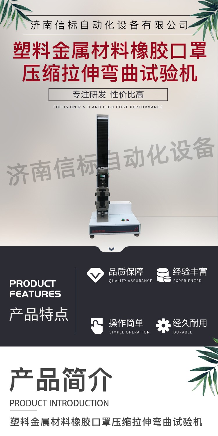 金屬材料壓縮彎曲實驗口罩塑料拉伸強度試驗機主要功能及特點: 1、主機: 1.1調(diào)速系統(tǒng)采用伺服電機和自主研發(fā)減速系統(tǒng),性能穩(wěn)定可靠,具有過流、過壓、過載等保護裝置。調(diào)速范圍可達0.05~500mm/min。 1.2傳動部分采用圓弧同步齒形帶,精密絲杠副傳動,傳動平穩(wěn),噪音低,傳動效率高。 1.3萬向節(jié)采用十字插銷結(jié)構(gòu),而且具有擺角限制功能,一方面便于試樣夾持,保證試驗同心度,另一方面很好的消除了不規(guī)則試樣對傳感器的影響。 2、控制系統(tǒng)、操作軟件及數(shù)據(jù)處理系統(tǒng) 2.1計算機控制系統(tǒng),具有集成度高、性能穩(wěn)定、調(diào)整方便等優(yōu)點??梢詫嶒灁?shù)據(jù)進行實時采集,對實驗特性曲線實現(xiàn)實時動態(tài)顯示,試驗數(shù)據(jù)文件能以Access常用數(shù)據(jù)庫或SQLserve大型數(shù)據(jù)庫的方式保存,方便實現(xiàn)客戶的資源共享及網(wǎng)絡(luò)管理,以及用戶的再分析。對于用戶自定義的各種word2000報表,該軟件可輕松實現(xiàn)訪問,解決了不同用戶或同一用戶在不同時期對試驗報表有不同需要的難題。該軟件可處理試驗力、位移、時間、變形的原始數(shù)據(jù)及由此派生的曲線。