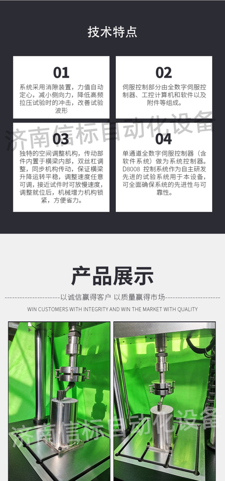 濟(jì)南信標(biāo)自動(dòng)化設(shè)備有限公司主要生產(chǎn):動(dòng)靜態(tài)萬(wàn)能疲勞試驗(yàn)機(jī),接骨板彎曲試驗(yàn)機(jī),縫合線拉伸疲勞試驗(yàn)機(jī),髖膝關(guān)節(jié)磨損試驗(yàn)機(jī),電子萬(wàn)能試驗(yàn)機(jī)、液壓萬(wàn)能試驗(yàn)機(jī)、巖石三軸、四軸,電液拉力試驗(yàn)機(jī),材料試驗(yàn)機(jī),高低溫蠕變,高低頻疲勞,拉伸、扭轉(zhuǎn)、杯突等二十多個(gè)系列兩千多個(gè)的品種。