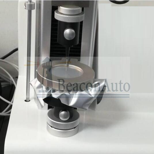 WDC-5鋰電池隔膜穿刺強度試驗機 穿刺強度定義: 將直徑為100mm的試片安裝在樣膜固定夾環(huán)上,然后用直徑為1.0mm,球形頂端半徑為0.5mm的鋼針,以(50±5)mm/min的速度去頂刺,讀取鋼針穿透試片的大負荷,測試片數(shù)5個以上,取其平均值。 塑料薄膜的抗穿刺能可更全面反映薄膜的抗穿刺性能。 塑料薄膜或復(fù)合薄膜的耐穿刺力是檢測包裝材料的重要指標之一,尤其是對于蒸熟肉制品包裝,例如禽類肉制品,其中骨頭對包裝材料有較強的穿刺能力,因此,測試包材的穿刺強度是包材廠家及食品生產(chǎn)企業(yè)必檢項目。其實驗方法在GB/T 10004-2008(包裝用塑料復(fù)合膜、袋干法復(fù)合、擠出復(fù)合)有明確規(guī)定。