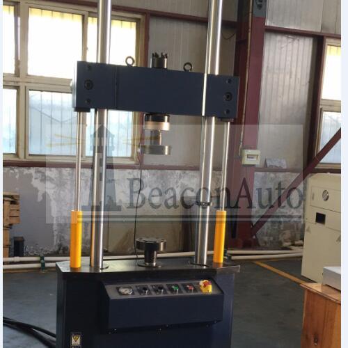 金屬線索疲勞機械性能試驗機 產(chǎn)品特點: 1.主機:(輔助實驗夾具以客戶要求為準) 金屬線索疲勞機械性能試驗機主機為雙立柱框架式結(jié)構(gòu), 伺服直線作動器下置于主機框架上部。夾頭分別安裝在橫梁和作動器活塞桿頂端。主機橫梁調(diào)整采用電動絲杠升降,傳動單元隱藏在橫梁內(nèi)部,外觀整潔,主機下部工作臺為分體式,不需要刻意拆掉,整機防止在客戶Z定的臺面上。手動夾緊、彈性松開式結(jié)構(gòu),保證試驗過程中橫梁穩(wěn)固可靠,同時保證在非試驗狀態(tài)時橫梁保持鎖止不動。立柱外表面采用電鍍硬鉻處理,可有效增加立柱抗磨損能力,提高防腐蝕能力,同時增加主機外形的美觀程度。 試驗機主機具有結(jié)構(gòu)緊湊、橫梁升降自如、機架剛度高、試件夾持可靠、對中性好、裝夾方便等特點,并可配備各種夾具和環(huán)境試驗裝置以擴展試驗功能。 2、作動器: 2.1伺服直線作動器是試驗機的核心部件,試驗機通過作動器輸出試驗力。采用自有技術(shù)自行設(shè)計制造,作動器內(nèi)置在主機上部,由作動器主體、伺服電機,伺服驅(qū)動器和傳感器組成。 2.2、伺服直線作動器振幅極限位置設(shè)計緩沖區(qū),避免運行失控產(chǎn)生損傷。 2.3、伺服直線作動器位移傳感器內(nèi)置于活塞桿內(nèi)采用美國Schaevitz公司LVDT位移傳感器,運動靈活不受外來干擾,活塞桿采用超精加工,表面鍍絡(luò)拋光達Rα0.4u。 2.4、負荷傳感器與夾頭接螺桿處、推桿桿與夾頭處設(shè)計有專用消除間隙裝置,進一步提高動態(tài)響應(yīng)性能。