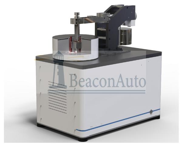 MPT20平面/銷盤摩擦磨損試驗機 關鍵詞:小型盤銷式摩擦試驗機,銷盤式摩擦磨損試驗機,金屬涂層銷盤式摩擦磨損試驗機,球盤摩擦機 一 MPT20平面/銷盤摩擦磨損試驗機概述 該試驗機主要用于測定滑軌及特定金屬在近似PV值下的摩擦性能。另外,該機還可在較高的線速度條件下,用來評定潤滑劑、金屬、塑料、涂層、橡膠、陶瓷等材料的摩擦磨損性能,摩擦副形式主要是點和面,面面接觸摩擦。 二 MPT20平面/銷盤摩擦磨損試驗機主要技術規(guī)格及技術參數 2.1法向加載:0.1-20N 2.2法向加載,并可實現試驗力的長時保持; 2.3 法向力值控制精度:±0.5% 2.4溫度控制范圍:-20°-100℃,紅外非接觸測量方式;(選配) 2.5工裝夾持范圍:33-160mm,可調 2.6 銷工位數: 3個 2.7 主軸轉速:0.1-1200r/min 2.5可連續(xù)長時間運轉,機器噪音≦40dB; 2.7運轉過程中產生的數據,如摩擦力、往復頻率、往復振幅,載荷波動、試樣溫度等均由計算機進行采集和進行實時處理,以數據圖表形式給出試驗結果,在同一時間坐標下采用不同顏色給出:載荷-時間、摩擦系數-時間、溫度-時間、位移-時間四條曲線,并可轉換成相應的“參數-路程曲線”,在計算機屏幕上實時顯示。所有數據由計算機記錄存盤,以供查閱和打印,數據可轉換成Excel格式。 三.MPT20平面/銷盤摩擦磨損試驗機試驗機結構原理 1. 主要技術要求及滿足情況:(水平運動總成選配) 為滿足2的各項技術要求,本產品擬采用以下方案 3.1該試驗機由法向加載系統(tǒng)、水平杠桿,扭矩測力系統(tǒng),溫控系統(tǒng),滅火系統(tǒng)及其冷卻及潤滑裝置、電氣控制柜及計算機實時數據采集及控制系統(tǒng)(包括軟件)等部分組成; 試驗機主機主要由主機機座、水平機座、法向主軸及其驅動系統(tǒng)、試驗力施加裝置、摩擦扭矩及位移高精度傳感測量系統(tǒng)、試驗力測量及摩擦溫度測量系統(tǒng)等組成;試驗機法向加載系統(tǒng)采用杠桿+砝碼,精度高,可靠性好;水平加載系統(tǒng)采用直線電機作為加載系統(tǒng),控制精度高,相應快,主機機座采用較大質量的鑄鐵件,固有頻率高,吸震抗震性能好,箱體座也是采用鑄鐵件經數控鏜加工后將電主軸牢固鎖緊在箱體座中,這樣可以提高加載工作時的平穩(wěn)性。 3.2冷卻及潤滑裝置的功能主要是對作動器進行冷卻和潤滑,以使作動器長時穩(wěn)定可靠工作。(適用于油品測試) 3.3計算機實時數據采集及數據處理控制系統(tǒng)是專門編制的控制軟件對各項試驗參數進行人為設定、采集、監(jiān)控及輸出的智能系統(tǒng),可避免試驗結果的人為影響,提高試驗結果的準確度。 3.5摩擦力的測量選用美國世銓公司的高精度力傳感器; 3.6在充分潤滑和冷卻狀態(tài)下,本產品可完全滿足連續(xù)運轉1小時的技術要求。 3.7本產品可進行“銷-盤”、“環(huán)-盤”等多種摩擦副的試驗,并可在干摩擦及有油潤滑狀態(tài)下工作;摩擦副形式及尺寸可按用戶要求設計,易于操作,裝卸試樣方便,并附專用工具等。 3.8試驗溫度的測量采用中科院產紅外非接觸測溫方式進行。 3.9根據技術要求,通過智能儀表及專門編制的計算機軟件對試驗運轉過程中產生的諸如摩擦力矩、載荷波動、摩擦溫升等試驗參數進行實時采集及處理,并給出相應的試驗曲線,可將試驗數據存盤并轉換成Excel表格形式以供查閱和打印輸出。 四MPT20平面/銷盤摩擦磨損試驗機 配置清單 序號 | 項目名稱 | 規(guī)格型號 | 數量 |