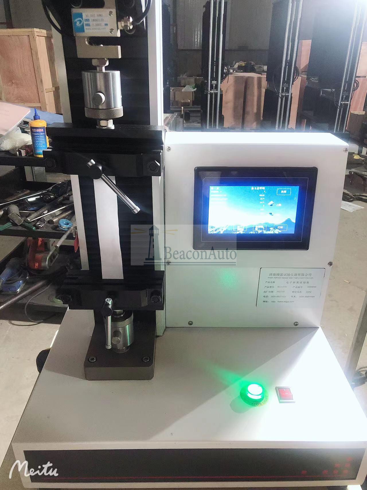 醫(yī)用口罩防護(hù)服抗拉強(qiáng)度試驗(yàn)機(jī) 產(chǎn)品型號(hào):WDL-05 醫(yī)用口罩防護(hù)服抗拉強(qiáng)度試驗(yàn)機(jī)產(chǎn)品用途: 醫(yī)用口罩防護(hù)服抗拉強(qiáng)度試驗(yàn)機(jī)該機(jī)廣泛應(yīng)用于醫(yī)用口罩,防護(hù)隔離服,口罩包裝袋,橡膠、塑料、紡織物、防水材料、無紡布等非金屬材料及金屬絲、金屬箔、金屬片的壓拉伸撕裂性能試驗(yàn)。 醫(yī)用口罩防護(hù)服抗拉強(qiáng)度試驗(yàn)機(jī)產(chǎn)品特點(diǎn):1、采用高精度、全數(shù)字調(diào)速系統(tǒng)及精密減速機(jī), 驅(qū)動(dòng)精密絲杠副進(jìn)行試驗(yàn),實(shí)現(xiàn)試驗(yàn)速度的大范圍調(diào)節(jié), 試驗(yàn)過程噪音低、運(yùn)行平穩(wěn)。 2、萬向節(jié)采用十字插銷結(jié)構(gòu),而且具有擺角限制功能, 一方面便于試樣夾持,保證試驗(yàn)同心度, 另一方面很好的消除了不規(guī)則試樣對(duì)傳感器的影響。 3、觸摸鍵操作方式,液晶顯示器實(shí)時(shí)顯示。 顯示界面可顯示試驗(yàn)方法選擇界面、試驗(yàn)參數(shù)選擇界面、試驗(yàn)操作及結(jié)果顯示界面和曲線顯示界面,方便快捷。 4、可實(shí)現(xiàn)試樣裝夾時(shí)橫梁快慢升降調(diào)整,具有過流、過壓、過載等保護(hù)裝置。 5、選配微機(jī)接口,可外接微機(jī)實(shí)現(xiàn)試驗(yàn)過程的控制及數(shù)據(jù)的存儲(chǔ)、打印。
