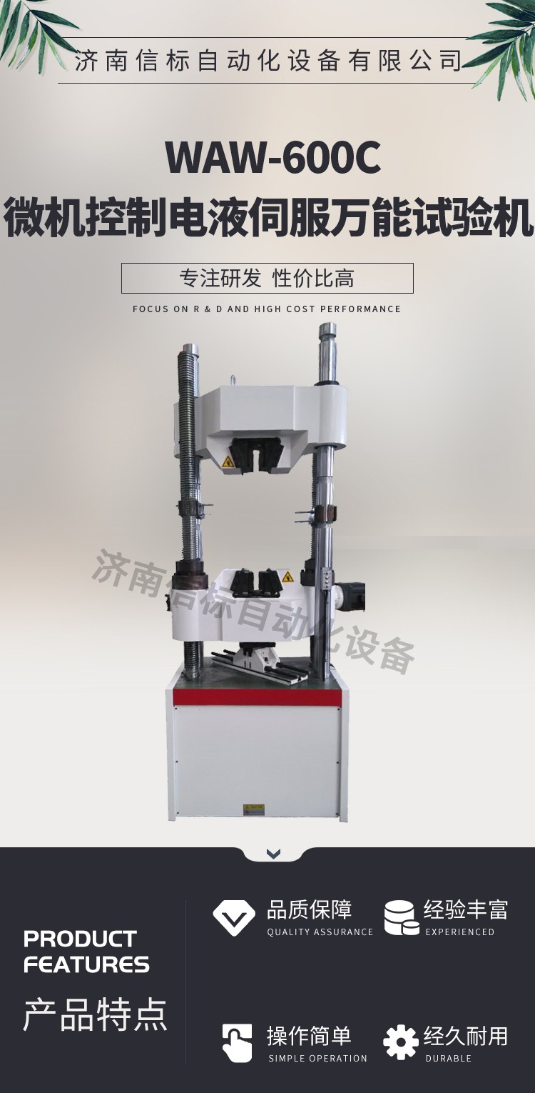 濟(jì)南信標(biāo)自動化設(shè)備有限公司主要生產(chǎn):動靜態(tài)萬能疲勞試驗(yàn)機(jī),接骨板彎曲試驗(yàn)機(jī),縫合線拉伸疲勞試驗(yàn)機(jī),髖膝關(guān)節(jié)磨損試驗(yàn)機(jī),電子萬能試驗(yàn)機(jī)、液壓萬能試驗(yàn)機(jī)、巖石三軸、四軸,電液拉力試驗(yàn)機(jī),材料試驗(yàn)機(jī),高低溫蠕變,高低頻疲勞,拉伸、扭轉(zhuǎn)、杯突等二十多個系列兩千多個的品種。