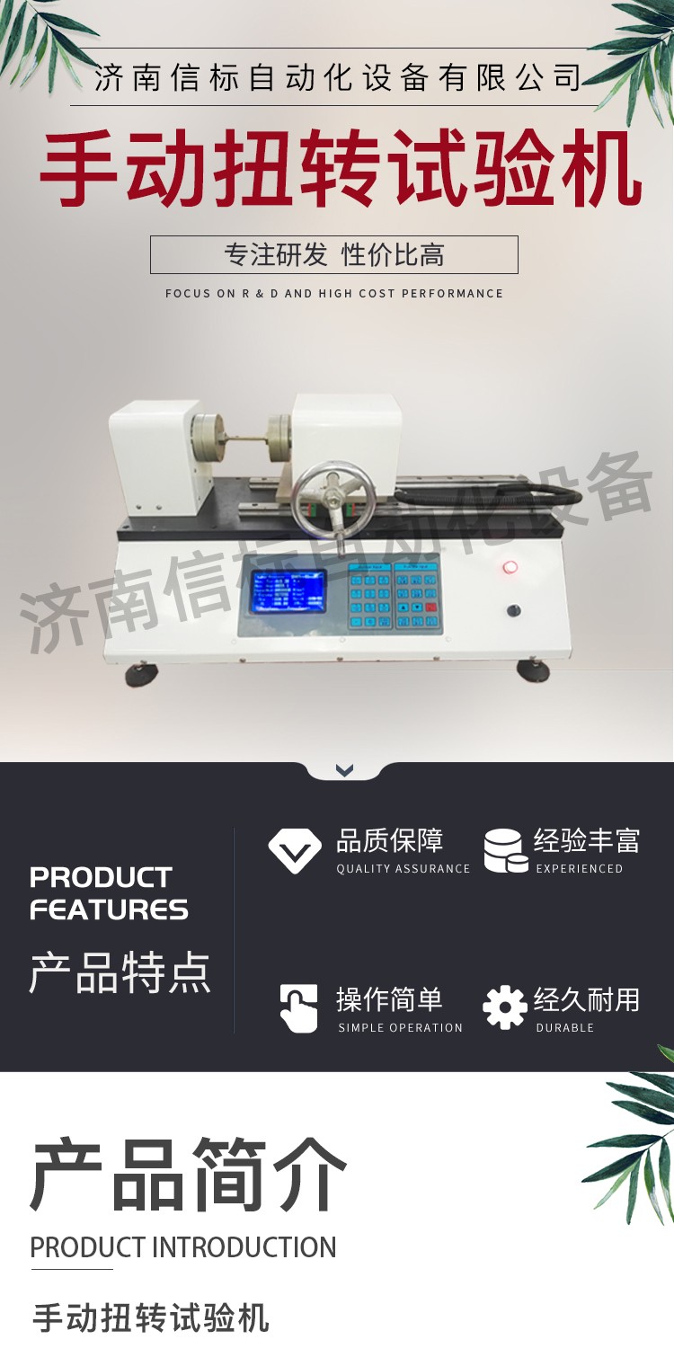 一、介紹 試驗(yàn)機(jī)用扭矩傳感器,三爪卡盤,減速機(jī) 旋轉(zhuǎn)編碼器 數(shù)據(jù)采集器 計(jì)算機(jī)組成,通過(guò)手輪旋轉(zhuǎn)帶動(dòng)減速機(jī)的渦輪旋轉(zhuǎn),卡盤和渦輪相連,可以帶動(dòng)試樣的一端旋轉(zhuǎn),試樣的另一端通過(guò)夾頭和傳感器相連,這樣在旋轉(zhuǎn)過(guò)程中,試樣所受的扭力就傳遞到扭矩傳感器上面,經(jīng)過(guò)采集系統(tǒng),傳輸?shù)接?jì)算機(jī)上面,表面器 和渦輪的另一端連接,旋轉(zhuǎn)時(shí)會(huì)將信號(hào)傳給采集器,從而實(shí)現(xiàn)在扭轉(zhuǎn)過(guò)程中同步采集扭矩和旋轉(zhuǎn)角度。計(jì)算機(jī)可以實(shí)時(shí)計(jì)算最大扭矩,扭角,彈性模量,屈服扭矩等,并可實(shí)時(shí)繪制對(duì)應(yīng)的曲線。實(shí)驗(yàn)結(jié)束可以根據(jù)需求,打印數(shù)據(jù)報(bào)表,整機(jī)采用鋁合金型材拼接,外觀精致,底部裝有滾輪,方便移動(dòng)。試驗(yàn)機(jī)用扭矩傳感器,三爪卡盤,減速機(jī) 旋轉(zhuǎn)編碼器 數(shù)據(jù)采集器 計(jì)算機(jī)組成,通過(guò)手輪旋轉(zhuǎn)帶動(dòng)減速機(jī)的渦輪旋轉(zhuǎn),卡盤和渦輪相連,可以帶動(dòng)試樣的一端旋轉(zhuǎn),試樣的另一端通過(guò)夾頭和傳感器相連,這樣在旋轉(zhuǎn)過(guò)程中,試樣所受的扭力就傳遞到扭矩傳感器上面,經(jīng)過(guò)采集系統(tǒng)。 二、基本參數(shù) 1.最大扭矩:50NM 2.扭矩分辨率:0.01NM 3.角度范圍:0-999999度,(無(wú)限制) 4.夾持范圍:3-12mm 5.測(cè)試空間:20-150mm 6.外形尺寸:850*320*260 7.重量:45kg 三配置: 1.計(jì)算機(jī):1套 2.采集儀:1套 3.傳感器:1套 4.減速機(jī):1套 5.編碼器:1套 6.隨機(jī)工具:1套 7.三爪夾頭:2套