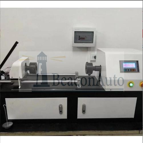 線材扭斷強(qiáng)度試驗(yàn)機(jī) 鋼絲繩扭轉(zhuǎn)疲勞檢測(cè)臺(tái) 一、主要用途 線材扭斷強(qiáng)度試驗(yàn)機(jī)適用于測(cè)定直徑(或特征尺寸)為3-5.0mm 的金屬線材在單向或雙向扭轉(zhuǎn)中承受塑性變形的能力及顯示線材表面和內(nèi)部的缺陷。 二、原理: 單向扭轉(zhuǎn):試樣繞自身軸線向一個(gè)方向均勻旋轉(zhuǎn)360度作為一次扭轉(zhuǎn)至規(guī)定次數(shù)或試樣斷裂。 雙向扭轉(zhuǎn):試樣繞自身軸線向一個(gè)方向均勻旋轉(zhuǎn)360度作為一次扭轉(zhuǎn)至規(guī)定次數(shù)后,向相反方向旋轉(zhuǎn)相同次數(shù)或試樣斷裂。 金屬線材扭轉(zhuǎn)試驗(yàn)機(jī)適用標(biāo)準(zhǔn): 金屬線材扭轉(zhuǎn)試驗(yàn)機(jī)適用于中華人民共和國(guó)標(biāo)準(zhǔn)GB/T 239.1-2012《金屬材料 線材 第一部分 單向扭轉(zhuǎn)試驗(yàn)方法》、GB/T 239.2-2012《金屬材料 線材 第二部分 雙向扭轉(zhuǎn)試驗(yàn)方法》,也適用于國(guó)際標(biāo)準(zhǔn)ISO 7800:2003《金屬線材單向扭轉(zhuǎn)試驗(yàn)方法》和ISO 9649:1990《金屬線材雙向扭轉(zhuǎn)試驗(yàn)方法》。 金屬線材扭轉(zhuǎn)試驗(yàn)機(jī)應(yīng)用領(lǐng)域: 該機(jī)主要用于大專院校、科研部門、工礦企業(yè)的力學(xué)實(shí)驗(yàn)室的金屬線材的力學(xué)性能分析,也廣泛用于生產(chǎn)單位的在線檢測(cè);主要行業(yè)有鋼廠高速線、預(yù)應(yīng)力鋼絲廠、質(zhì)量監(jiān)督、科研院所、公路交通、建筑行業(yè)、鋼絲繩、電線電纜、電氣化鐵道用銅及銅合金導(dǎo)線、銅接觸線等生產(chǎn)和使用部門。 線材扭斷強(qiáng)度試驗(yàn)機(jī)主機(jī)介紹: 1、機(jī)械結(jié)構(gòu): 該機(jī)型采用高性能交流電機(jī)作為動(dòng)力輸出,配以高精度減速電機(jī),從而使動(dòng)力能平穩(wěn)輸出。電機(jī)的驅(qū)動(dòng)采用高可靠、高穩(wěn)定變頻器,提高機(jī)器運(yùn)行的平順性,降低功耗。一側(cè)夾頭固定在電機(jī)輸出軸,另一側(cè)夾頭固定在可移動(dòng)軸承座。移動(dòng)座采用直線軸承,摩擦阻力小,保證了軸向移動(dòng)的平直度。軸向拉緊力采用砝碼施加,通過10:1的L型杠桿,將作用力施加在線材上。 2、控制單元: 控制系統(tǒng)選用進(jìn)口Atmel微處理器,結(jié)合成熟的控制方法,使得控制單元在控制精度和運(yùn)行穩(wěn)定性方面得到保證。顯示屏選用工業(yè)級(jí)液晶屏,具有壽命長(zhǎng)、性能穩(wěn)定、視角寬等特點(diǎn)。計(jì)數(shù)器為抗干擾能力強(qiáng)的霍爾傳感器,該計(jì)數(shù)器同時(shí)還具有高靈敏度和較好的動(dòng)態(tài)性能,本機(jī)具有自動(dòng)判斷線材斷裂功能