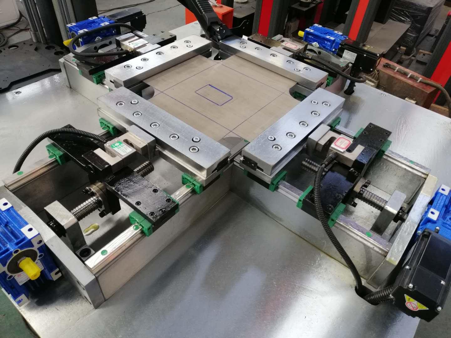 格室節(jié)點四軸拉伸測試系統(tǒng) 一、四軸拉伸測試系統(tǒng)基本功能介紹: 如附圖所示,四軸拉伸測試系統(tǒng)用于測試格室節(jié)點在四個方向拉伸狀態(tài)下,節(jié)點及母材的力學(xué)性能,四軸聯(lián)動,原位拉伸,四根拉伸主梁交叉布置,每套拉伸夾具下面分別布置兩組導(dǎo)軌,起到導(dǎo)向和拉伸時防轉(zhuǎn)的功能,夾具及橫梁移動時同步運行,X Y 方向分別布置測力傳感器和變形傳感器,分別測量兩個方向力及變形的變化。專用測試軟件,滿足新標準中相關(guān)要求。 專用工裝夾具,單邊夾持,夾持長度50mm,鉗口內(nèi)部鑲嵌軟質(zhì)材料,在保證夾持可靠的基礎(chǔ)上防止劃傷試件,機械式鎖緊,穩(wěn)定可靠, 控制系統(tǒng)采用聯(lián)動補償機制,(4軸加工中心算法) 閉環(huán)控制,保證拉伸時,絕對位置不變,控制模式分為力控制和位移控制,其中力控制過程中,追加了位移超差補償,盡量降低試件的變形程度(正常是一個十字線,因為材料或者銷釘強度不同,受力變形存在不一致的情況,軟件中增加的補償算了,一旦位移超差,系統(tǒng)會自動補償,) 二、四軸拉伸測試系統(tǒng)軟件簡介 1. ConquerTest界面友好、使用方便、功能強大。 2. 數(shù)據(jù)庫采用ACCESS格式,方便攜帶和擴展 3. 同時可實時顯示三路采集,并可任意切換;外加顯示三路計算速度 4. 試驗時,可同時顯示多個曲線,可以設(shè)定需要顯示的坐標,例如:載荷-時間,載荷-位移,應(yīng)力-應(yīng)變等多種曲線,坐標滿度自動調(diào)節(jié) 5. 可以重新讀取已經(jīng)完成的試驗,可以對試驗曲線進行放大、縮小、平移,可以選擇顯示并標注特征位置??梢允潞笮薷脑囼瀰?shù),可以強制指定特征點位置,并且重新計算修改后的結(jié)果,也可以還原。 6. 很好支持用戶自定義Excel報告,每個試驗可以支持多個用戶自定義報告,支持把試驗分析的曲線輸出到用戶自定義報告中 7. 可以方便添加新的試驗標準庫,可以在現(xiàn)有的標準上方便添加試驗,可以針對每個試驗設(shè)置不同的輸入、輸出項目,也可針對每個試驗設(shè)置不同的報告格式,以及多個自定義報告。 8. 可以在現(xiàn)有試驗的基礎(chǔ)上設(shè)定試驗加載的流程,試驗步驟設(shè)置靈活方便,通俗易懂。 · 試驗機設(shè)計、制造、檢驗依據(jù)下列標準相關(guān)條款 依據(jù)標準JT/T1328 1. GB/T2611《試驗機通用技術(shù)要求》 2. JJF1103《萬能試驗機計算機數(shù)據(jù)采集系統(tǒng)評定》 3. JJG139《拉力、壓力和萬能試驗機的檢定規(guī)程》 4. GB/T19274-2003/XXXX土工合成材料 塑料土工格室 5. JJT516-2004土工格室的尺寸規(guī)格及施工規(guī)范 四、四軸拉伸測試系統(tǒng)電氣系統(tǒng): (1)采用交流伺服驅(qū)動器和交流伺服電機,性能穩(wěn)定、可靠,具有過流、過壓、超速、過載等保護裝置。調(diào)速比可達1:100000。 (2)具有過載、過流、過壓、位移上下限位和緊急停止等保護功能。 (3)電氣控制線路參照國際標準,符合國家試驗機電氣標準,抗干擾能力強,保證了控制器的穩(wěn)定性,實驗數(shù)據(jù)準確性。 五、控制系統(tǒng): 我公司自主研發(fā)的全數(shù)字閉環(huán)測控系統(tǒng)具有許多先進的特性和技術(shù)創(chuàng)新,主要體現(xiàn)在: 1、實現(xiàn)了試驗力、試樣變形、位移和試驗進程的四種閉環(huán)控制; 2、數(shù)據(jù)采集系統(tǒng)由4路高精準24位A/D轉(zhuǎn)換通道組成。最高分辨率達1/300000,全程不分檔; 3、選用BB、AD、Xilinx等原裝名牌集成器件,全數(shù)字化設(shè)計; 4、符合PCI總線標準,微機自動識別和安裝,做到“即插即測”; 5、電子測量系統(tǒng)無電位器等模擬元件,保證互換性,方便維修更換 六、四軸拉伸測試系統(tǒng)技術(shù)參數(shù) 1. 整機指標 序號 | 檢驗項目 | 技術(shù)要求 | 1 | 最大試驗力 | 50KN(四通道) | 2 | 試驗力分辨率 | 1/300000全程不分檔 | 3 | 力值示值相對誤差 | 1%-100%量程范圍內(nèi) ±0.5% | 4 | 變形測量范圍 | 0.2%~100%FS | 5 | 變形分辨率 | 1/300000全程不分檔 | 6 | 變形示值誤差 | 優(yōu)于±0.5% | 7 | 試驗力零點相對誤差 | ±0.1% | 8 | 位移分辨率 | 0.025mm | 9 | 力控速率調(diào)節(jié)范圍 | 0.005~5%FS/s | 10 | 力控速率控制精度 | 速率<0.05%FS/s時,為設(shè)定值的±2%以內(nèi); 速率≥0.05%FS/s時,為設(shè)定值的±1%以內(nèi); | 11 | 變形速率調(diào)節(jié)范圍 | 0.005~5%FS/s | 12 | 變形速率控制精度 | 速率<0.05%FS/s時,為設(shè)定值的±2%以內(nèi); 速率≥0.05%FS/s時,為設(shè)定值的±1%以內(nèi) | 13 | 位移速率調(diào)節(jié)范圍 | 0.001~300mm/min | 14 | 位移速率控制精度 | 速率<0.5mm/min時,為設(shè)定值的±1%以內(nèi); 速率≥0.5mm/min時,為設(shè)定值的±0.5%以內(nèi) | 15 | 恒力、恒變形、恒位移控制范圍 | 0.4%-----100%FS | 17 | 最大距離 | 200*200mm(單邊100) | 18 | 試樣最小取樣 | 200*200mm(單邊夾持50mm,中間預(yù)留100標距) | 20 | 設(shè)備尺寸(長x高x寬) | 1350*1350*850 | 21 | 電源電壓(須有可靠的接地) | ~220V±10% 50Hz | 22 | 機器重量 | 約600kg |